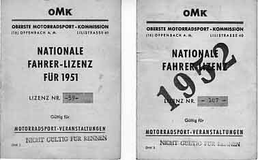 OMK Nationale Fahrer-Lizenz 1951 und 1952