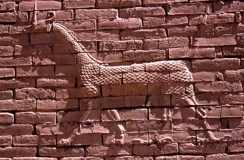 Greifendarstellung (Muschhuschu) am Mauerwerk des unteren Ischtartores. |