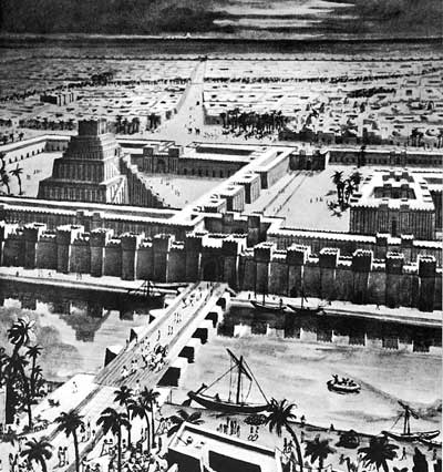 Babylon, Ischtartor, Turm von Babylon, Löwe, Weltwunder "Hängende Gärten", Prozessionsstraße!