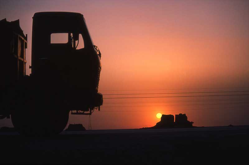 LKW, Brennofen, Sonnenuntergang.