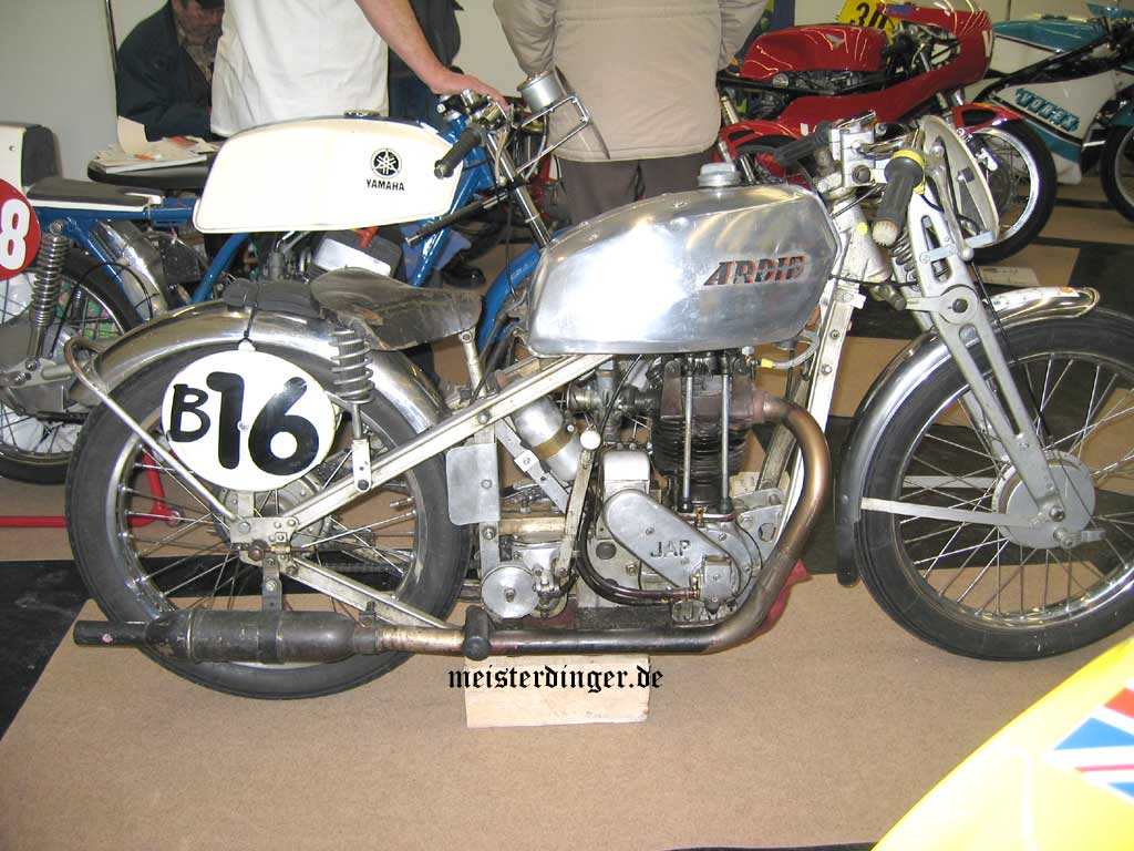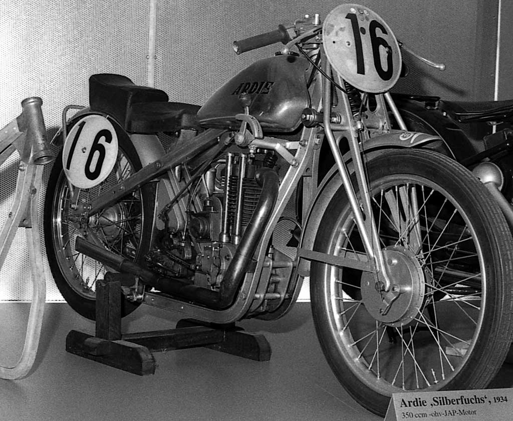Bild einer Ardie "Silberfuchs" aus dem Jahr 1934. Bild 1 2 3 einer Silberfuchs- Rennmaschine mit 350ccm, 25PS und 150km/h Spitzengeschwindigkeit aus dem Jahre 1930, fotografiert bei der BikersWorld 2005 in Nürnberg. Bild: 1 2 3 einer Silberfuchs, zugeschickt von Toni Gerhard. Vielen Dank! |
