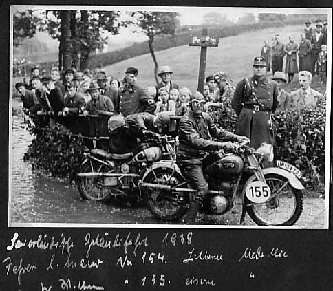 Sauerländische Geländefahrt 1938 Fahrer: A. Amend, No 154 Silberne Medaille, W. Wittmann, No 155 eiserne Medaille