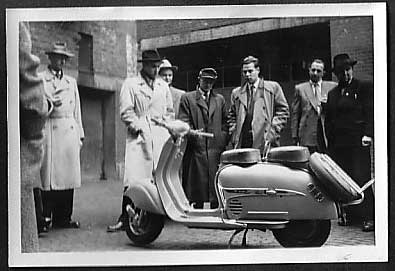 Erhalt des Knopf Ordens von Dürkopp in Bielefeld und Vorführung des Rollers. Mitte: A. Amend 1953