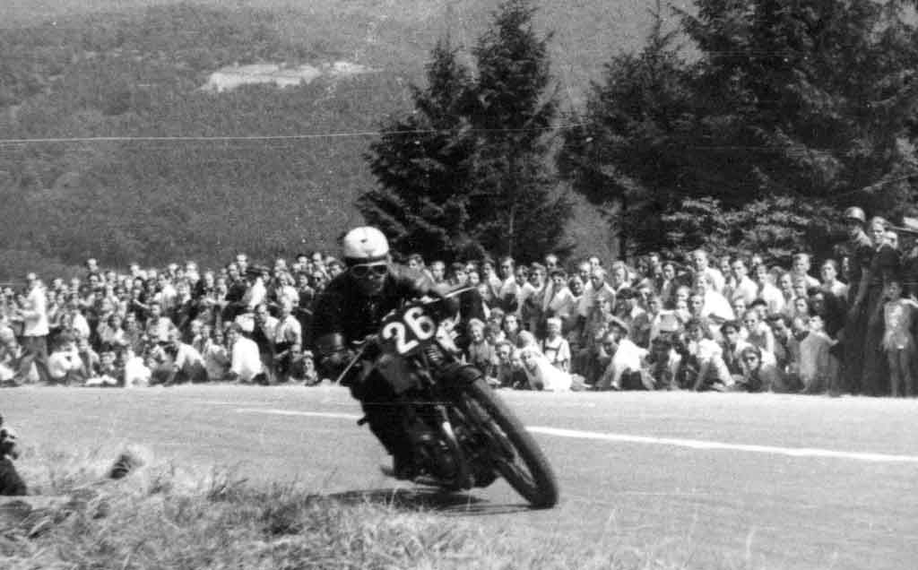 Herr Rudoph, Rickenbach/Egg (Experte für die Eggbergrennen) schrieb, dass die Bilder D51 und D52 nicht identisch seien, zwar auch am Eggberg und 1948, aber daß K.B. als Doppelstarter gestartet ist. Die Startnr. 26 wäre eigentlich Wiedenbach Robby, Schienen auf Rudge gewesen, der aber nicht am Start war. Das Rennen ging damals fast durch den gesamten Ort Egg.