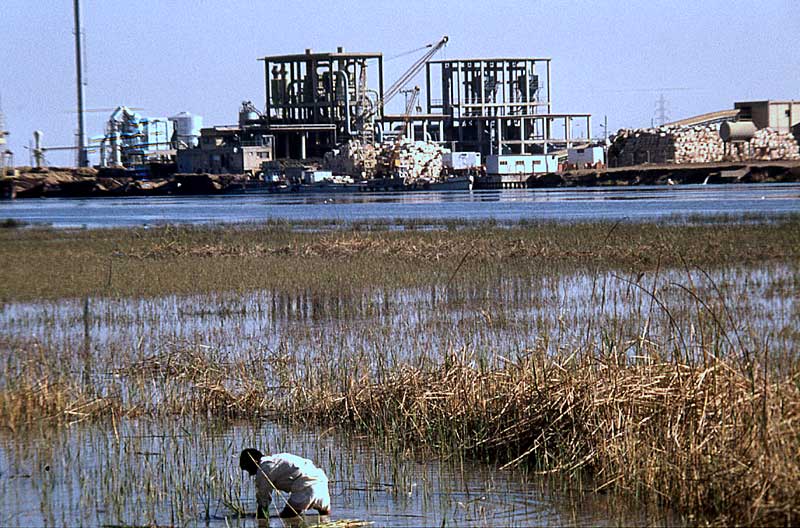 Die Zellstoff- und Papierfabrik "Basra II", etwa 30 km von Basra entfernt flußaufwärts am Schatt el-Arab gelegen, wurde im Jahr 1977 in Betrieb genommen. Sollte sich ein Kollege von AEG Frankfurt hier auf diese Seite verirren, der damals mit dabei war, so möchte ich ihn bitten, sich doch zu melden (s. Impressum). Wäre ja interessant zu erfahren, was aus den Menschen geworden ist! 1977 war ich für die Inbetriebnahme des Bereichs Zellstoffproduktion verantwortlich. Vielleicht weiss auch jemand, was nach all den Kriegen aus dieser Fabrik geworden ist. (Google Earth hat mir gezeigt, dass die Anlagen wohl noch stehen; ob sie noch in Betrieb sind, ist leider unklar.) |