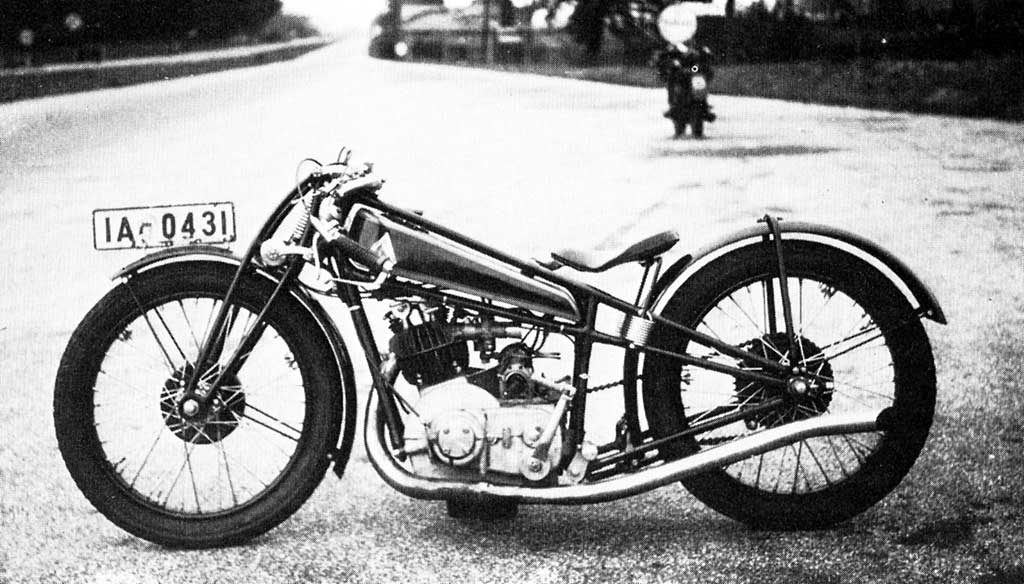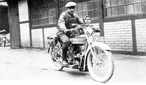 Martin Stolle erblickte am 03.03.1886 in Berlin das Licht der Welt. Bereits 1904, als Angestellter von Cudell in Aachen, bei Argus, später auch durch Kontakte zu Metallurgique Automobilen in Belgien hat er einschlägige Erfahrungen sammeln können. Schon vor dem 1. Weltkrieg besaß Stolle einen bei Douglas gebauten liegenden Zweizylinder sowie eine belgische FN, die er stark modifizierte. 1917 begann Stolle bei den Rapp-Werken, aus denen später BMW hervorging. Bei BMW war der von der Daimler AG, Untertürkheim gekommene technische Direktor Dr.-Ing. Max Friz tätig. Auf dem Zeichenbrett von Max Friz entstand 1922/23 das erste BMW- Motorrad R32 mit 496 ccm, seitengesteuert mit liegendem Zweizylinder- Boxermotor. Bis zum Erscheinen dieser R32 lieferte BMW seitengesteuerte längsliegende Zweizylinder- Boxermotore Typ M2B15 an verschiedene Firmen, u.a. auch Victoria (K.R.I) zum Einbau in ihre Fahrwerke. An diesen Konstruktionen war Stolle beteiligt. Um sich nicht selbst Konkurenz zu machen, wurde die Lieferung und Produktion dieses BMW- Längsboxers eingestellt. Victoria sicherte sich die Dienste von Martin Stolle, der daraufhin einen obengesteuerten liegende Zweizylinder Boxermotor mit höherer Leistung konstruierte. Die Motoren wurden für Victoria bei Sedelbauer in München produziert. Diese solide Konstruktion war Grundlage für viele Rennerfolge von Victoria. Ing. Steinlein hat im Jahre 1925 diesen Motor mit einem Kompressor versehen und damit die schnellsten Rennmaschinen Deutschlands gebaut. Adolf Brudes erreichte im Jahr 1926 in Freiburg/Br. mit einer solchen 500 ccm Victoria Kompressor Rennmaschine einen Durchschnitt von 166 km/h. Adolf Brudes auf Victoria 1924 Martin Stolle gründete bereits vorher, die vom Stinneskonzern mitfinanzierte, Autofabrik in München die schließlich unter "Vorster & Stolle Motoren AG" firmierte und wo Stolle ab 1925 die Stolle-Sportwagen baute, die auch den Namen "Kleiner Maybach" trugen! Stollewagen Diese modernen Sportwagen hatten einen 1490 ccm OHC Königswellen- Vierzylindermotor mit 69 mm Bohrung und 100 mm Hub, der 40 PS bei 2800 min-1 auf die Bremse brachte. Dies war nach dem Simson Supra S die höchste Hubraumleistung der vergleichbaren Wagen. Die Konstruktion erlaubte Geschwindigkeiten bis zu 120 km/h. Der erste für den Stollewagen vorgesehene Motor war aber kein Ventil- sondern ein Schiebermotor! Als etwa 20 Wagen fertig gestellt waren, starb Hugo Stinnes am 10.04.1924 und die finanzielle Grundlage für Stolle wie auch anderer kleiner Autohersteller wie Aga, Dinos, Rabat war anschliessend nicht mehr gegeben. Anfang 1926 schieden Martin und sein Bruder Willi Stolle als Vorstandsmitglieder aus dem Unternehmen aus und im Februar 1926 wurde über die AG der Konkurs verhängt. Martin Stolle ging daraufhin zurück nach Berlin, zu den in Spandau ansässigen Deutschen Industriewerken. Dort wurden, neben wenigen Automobilen jetzt hauptsächlich Motorräder gebaut. Ing. H. F. Günther konstruierte 1922 dort 393 ccm Motorräder mit liegendem Zweizylindermotor, die unter dem Markennamen "D-Rad" vertrieben wurden. Später konstruierte Ing. Christiansen ein D-Rad mit einem 498 ccm Einzylindermotor in Blockbauweise. Dies war ein schweres und mit Blattfedergabel ausgerüstetes "wie ein Bock springendes" Motorrad, dessen Beliebtheitskurve stark abfallend war. Stolles Aufgabe war es, die Konstruktion und den Ruf der Marke zu verbessern. Um das zu erreichen, gründete er eine Werksmannschaft um an Rennen und schweren Zuverlässigkeitsfahrten teilzunehmen. 1928: Werksrennmaschine von Stolle: Werksteam 1930 mit R-10: Damit sollte, wie es auch heute noch üblich ist, die Leistungsfähigkeit, Qualität und Zuverlässigkeit der Maschinen unter Beweis gestellt werden. Durch eiserne Disziplin, hohem Ausbildungsstand und Engagement für die eigene Firma gelang es, dieses Ziel zu erreichen. Das Team galt jahrelang als bestes deutsches Werksteam mit ihren grünen Fahrermänteln und Helmen. Dies war um so erstaunlicher, als die R-9 mit der Blattfedergabel für den Geländeeinsatz nicht eben geschaffen war. Stolle konstruierte 1929 die R-10 mit obengesteuertem Motor, getrenntem Getriebe und Parallelogrammfederung und die R-11 mit seitengesteuertem Motor. Im Team fanden sich im Laufe der Zeit so bekannte Namen wie die Bayern Franz Ischinger (später Direktor der Zweirad-Union), Franz Seelos, Max Polster, der Berliner Hans Przybylski, Franzl Heck, Ing. Curt Weichelt (auch Mabeko und BMW), Paul Bütow, Erich Tennigkeit, Alfred Gäbelmann, u.a.