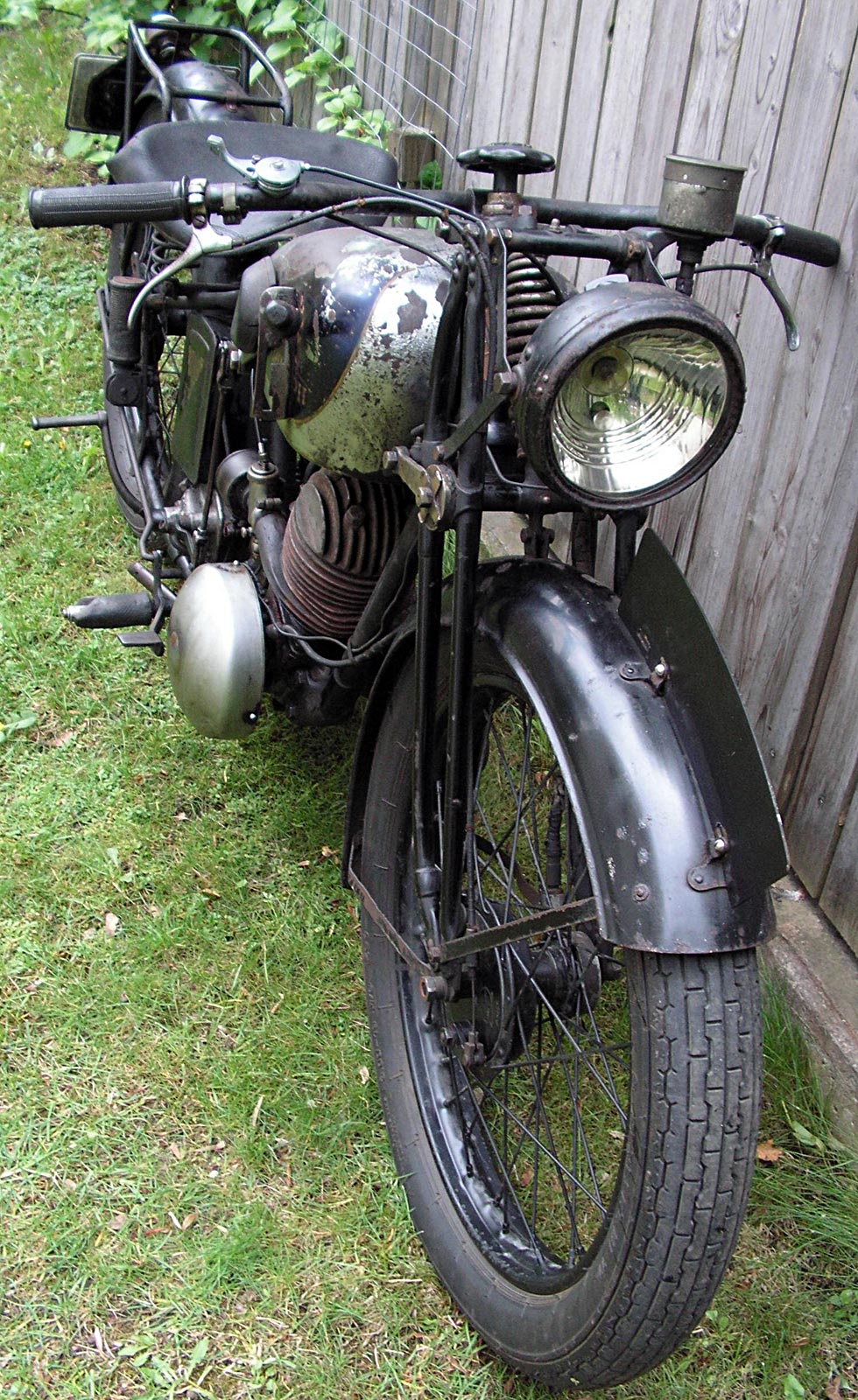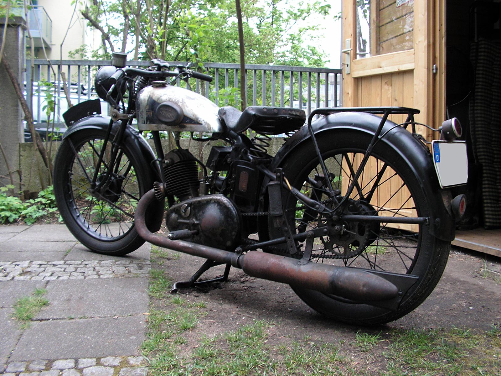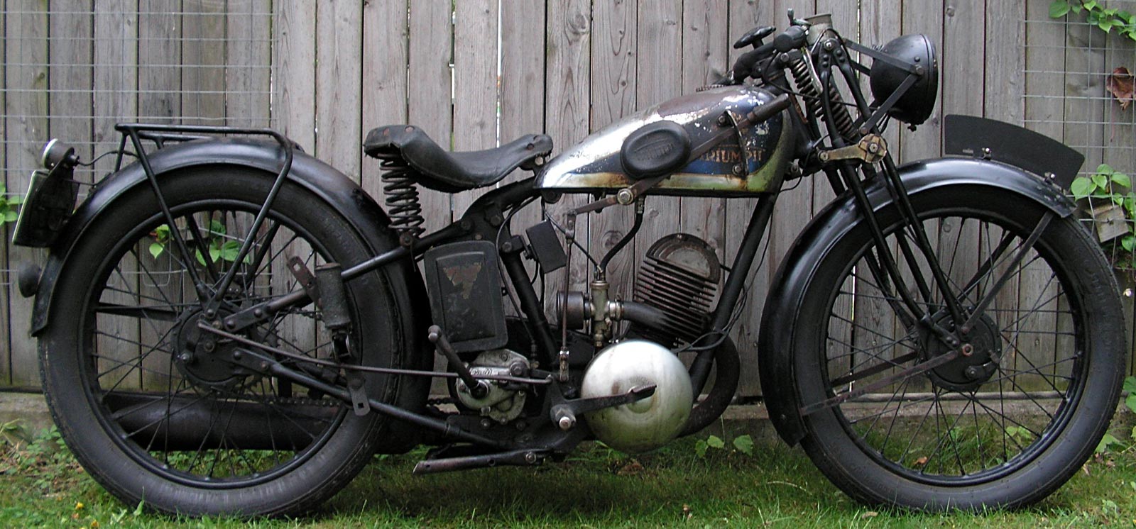 "Änderung in Ausstattung und Konstruktion vorbehalten." "Das preiswerte Kleinfahrzeug mit den Annehmlichkeiten der großen Tourenmaschine!" "Die wichtigsten Merkmale dieses kleinen Vollmotorrades: Stabiler gelöteter Rahmen (D.R.G.M.a.) mit kräftigem Gepäckträger 5 PS Triumph Zweitakt- Motor mit Leichtmetallkopf 40 Watt Batterie- Lichtanlage (kein Schwungrad- Magnet!) Dreigang- Getriebe mit modernster Langhebel- Tankschaltung Vollständig staub- und fettdicht gekapselte Getriebekette Doppelschieber- Vergaser mit Luftfilter" "Wie die Fahrer über die BL 170 urteilen:" "Ich fühle mich verpflichtet, Ihnen mit Heutigem meine allergrößte Bewunderung über die Leistung und Zuverlässigkeit Ihrer BL 170 auszusprechen. Am Sonntag fuhr ich die 13 km lange Gebirgsrennstrecke mit 178 steilen Kurven zwischen Hunderten von Fahrzeugen und mit einem 185 Pfund schweren Sozius so spielend und leicht, daß mein kleiner Riese, oben angekommen, nur so bestaunt wurde." C.J., Frommern, 18.Juni 1933 Bild 1 2 3 4 5 6 7 8 einer BLS 170, zur Verfügung gestellt von Gregor Plewinski [gregor (at) britishempire (dot) de]. Vielen Dank! |